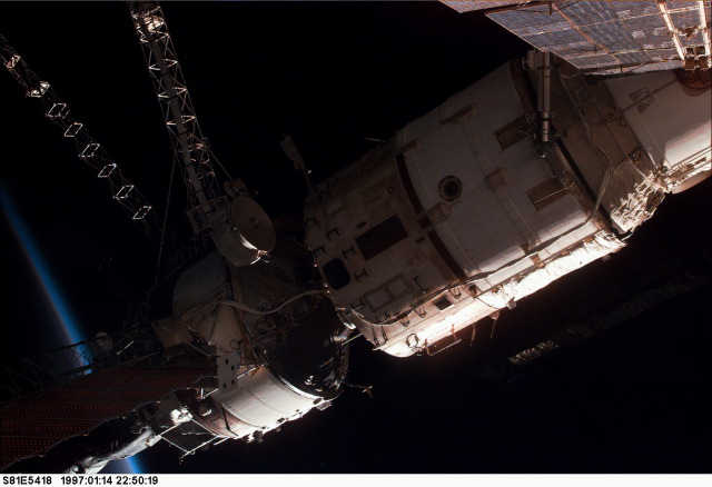 Am including zipped images (it's NOT everything I have !!!... shows all detail, colors.though..) You will notice that the color of Mir changes according to light conditions and reflections from the earth. Space is very peculiar in that there is seldom the same color twice. However, on Mir the /golden/brownish "glow" color I call it as shown in image Mir9.jpg and the closeup 76708038.jpg as well as images like s81e5460-mir_all.jpg give a close representation... The reason is these areas that change color are actually a material insulation which started green and have faded to white and the brown "glow" color. Outgassing from the shuttles and Mir attitude jets also produce it.