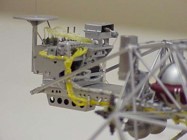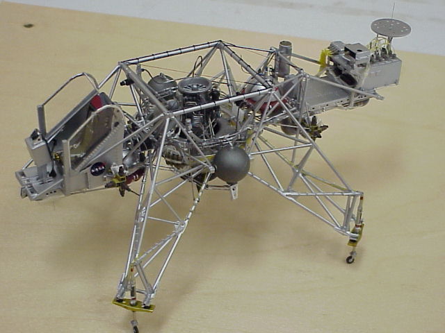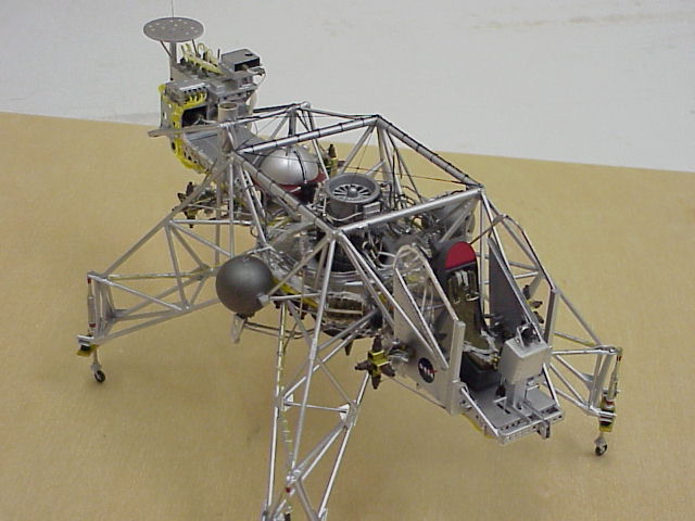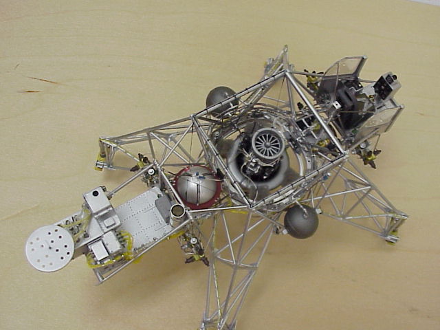 Master modeller Ben Guenther scratch-built this wonderful model of the Lunar Landing Research Vehicle. He has this to say about the model: The model represents the LLRV circa October, 1964. Around the time of its first flight. Forgot to have a ruler or anything in the picture for scale, but it's 1/48 and not very big about 6.5" long, 4" wide and 3" high. Conservatively, it has 2,414 pieces in it. The engine was built with 584 pieces, and it gimbles in 2 axes as the original. |