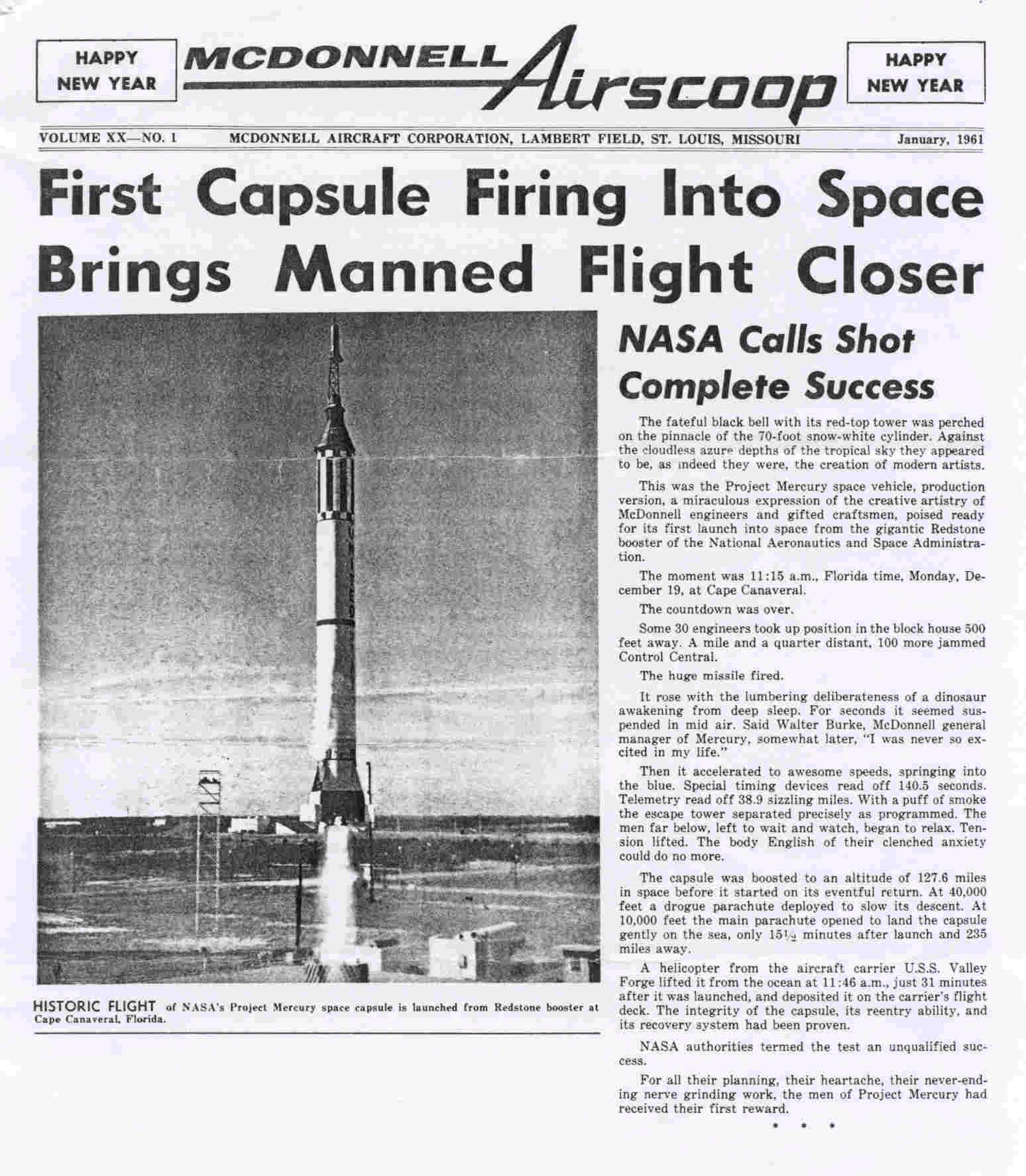 Pic #1: MR-1A liftoff, from McDonnell newsletter (Jan 1961) |