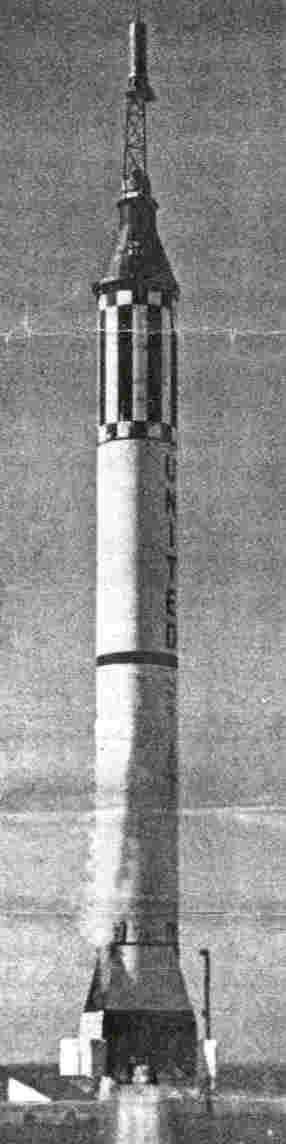 Pic #3: MR-1A vehicle on pad (from "Petersen's Book of Man in Space, Vol.1," p.41) |