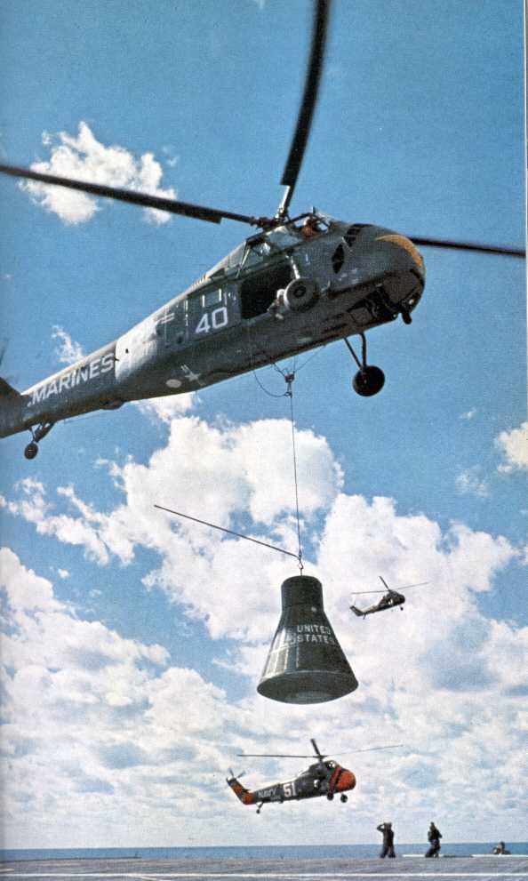 Pic #2: Recovery of MR-1A spacecraft (NASA, from Nat'l.Geog., May 1961, p.707) |