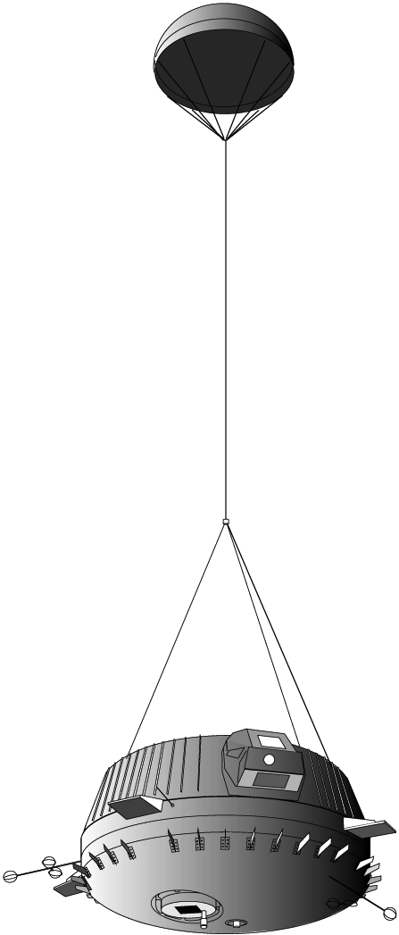 My concept of the Huygens descent module (based on sparse dimensions and one small cross section view) |