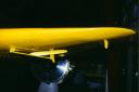 The N-1M was Jack Northrop's first pure flying wing. It was originally built with drooping wingtips, but they were later straightened. And that's how the National Air and Space Museum restored it. I saw it while it was parked in a hanger at the Garber Restoration Facility.